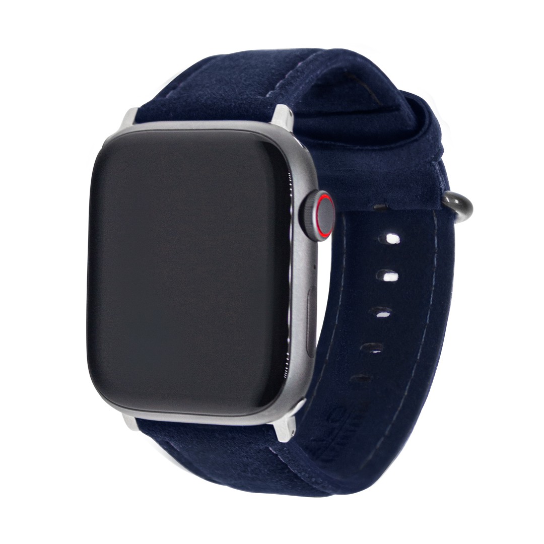 1 Pulseira de relógio em tecido Alcantara - 24mm largura | Cor Azul - Costuras Cinza