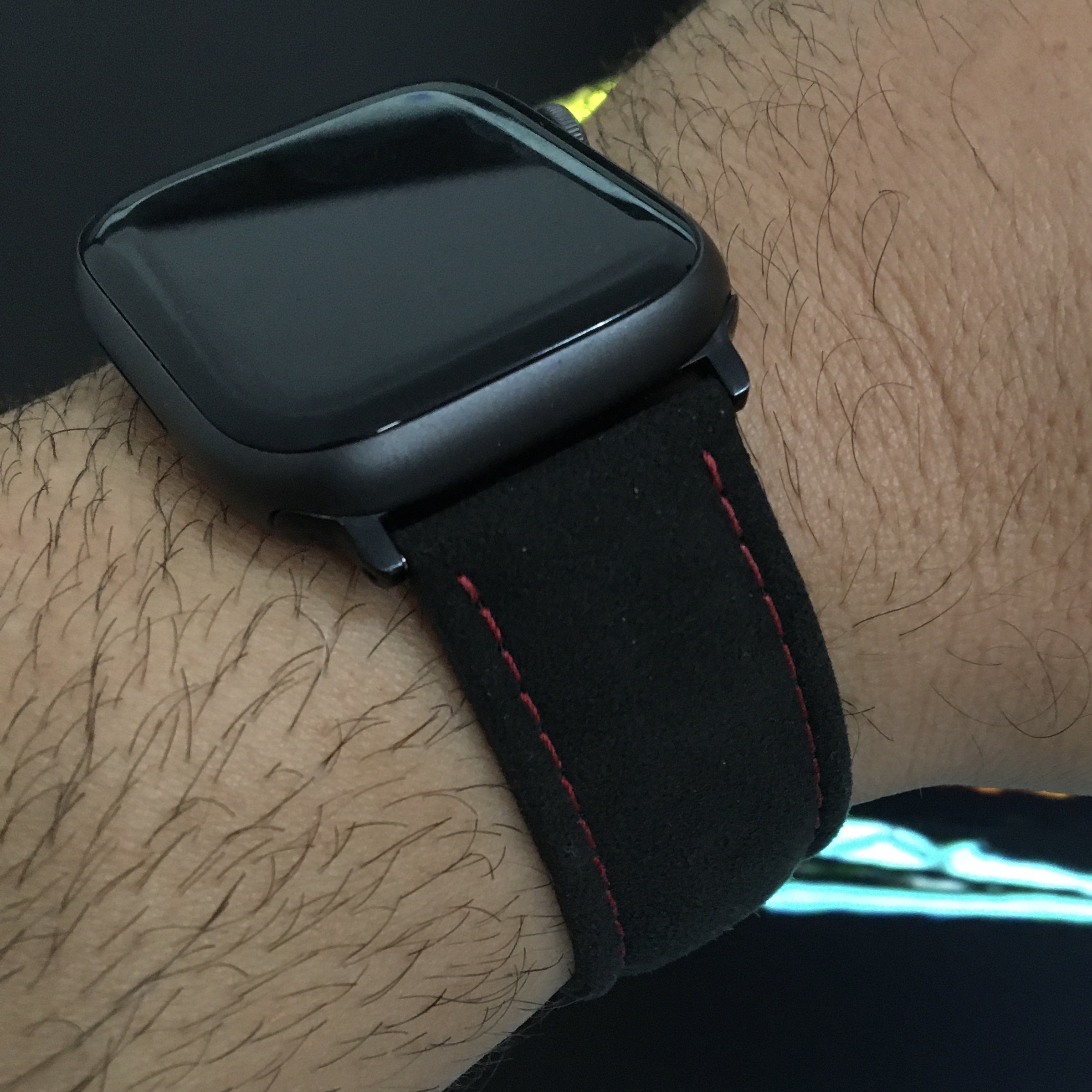 1 Pulseira de relógio em tecido Alcantara - 24mm largura | Cor Preto - Linhas Vermelhas